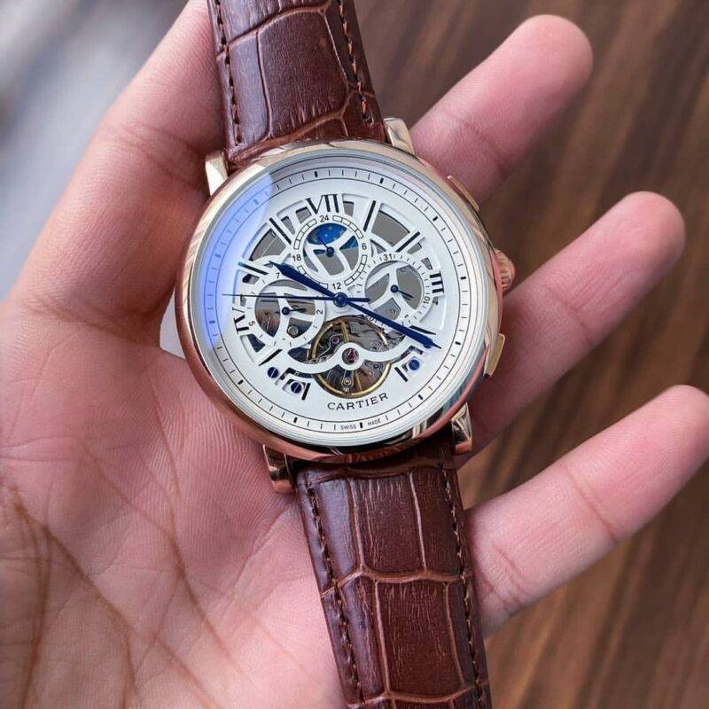 Cartier Roman Brown & Tourbillon Back Open Automatic Movement Available & Ready to ship today