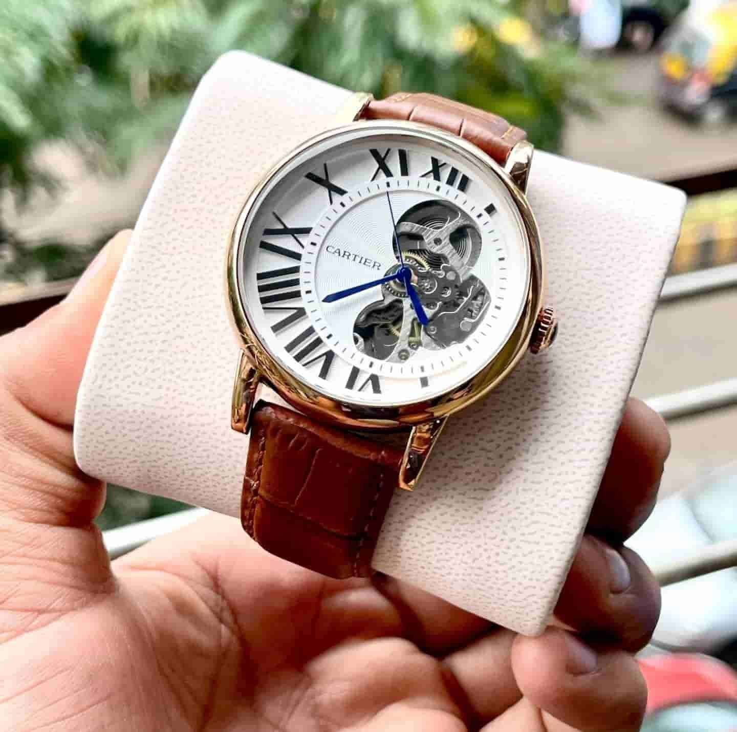 Enjoy the newest addition to the collection! The Cartier watch is now on a brown leather strap.