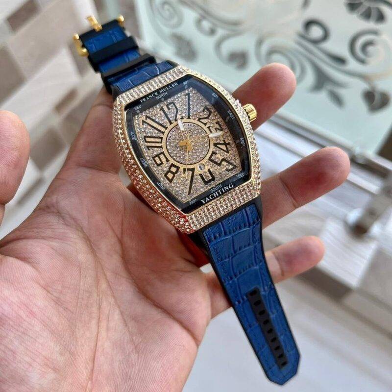 Franck Muller Yachting Blue with Full Diamond Studded Dial, Numerals, Quartz Movement Watch.