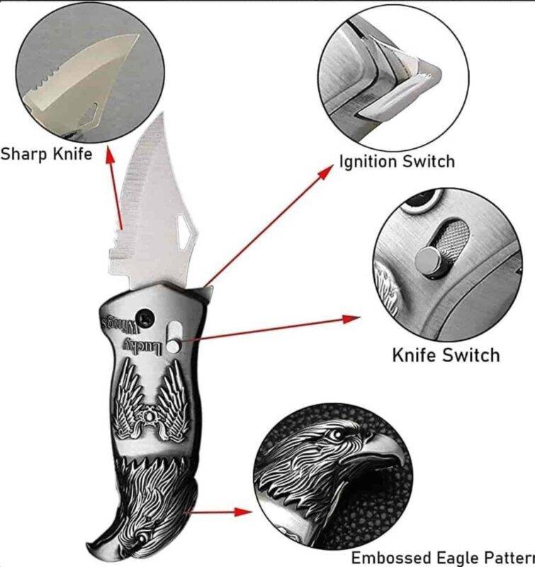 Eagle 🦅 Design Pocket Knife 🔪 lighter Jet Flame Butane lighter