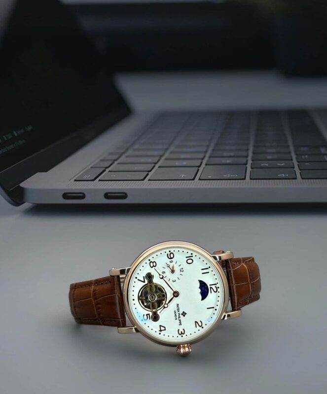Patek philippe Mens Luxury Skeleton Automatic Mechanical Wrist Watch.