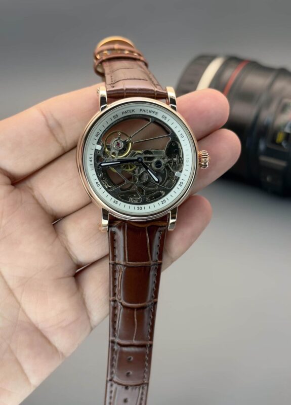 Patek philippe Mens Luxury Skeleton Automatic Mechanical Wrist Watch.