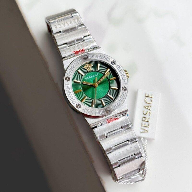 VERSACE Premium ETA Quality is one of the most Versatile Brands for its exquisite collection, furthering the brand’s pursuit of innovation, the Greca Chrono uses Indiglo technology, with which a blue light emanates from the Midnight Blue dial when the crown is pushed